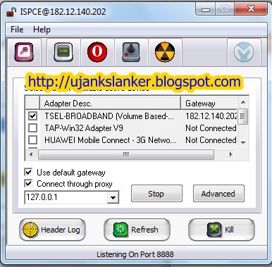 Buka ISPCE , klik use proxy, listen port isi 8888